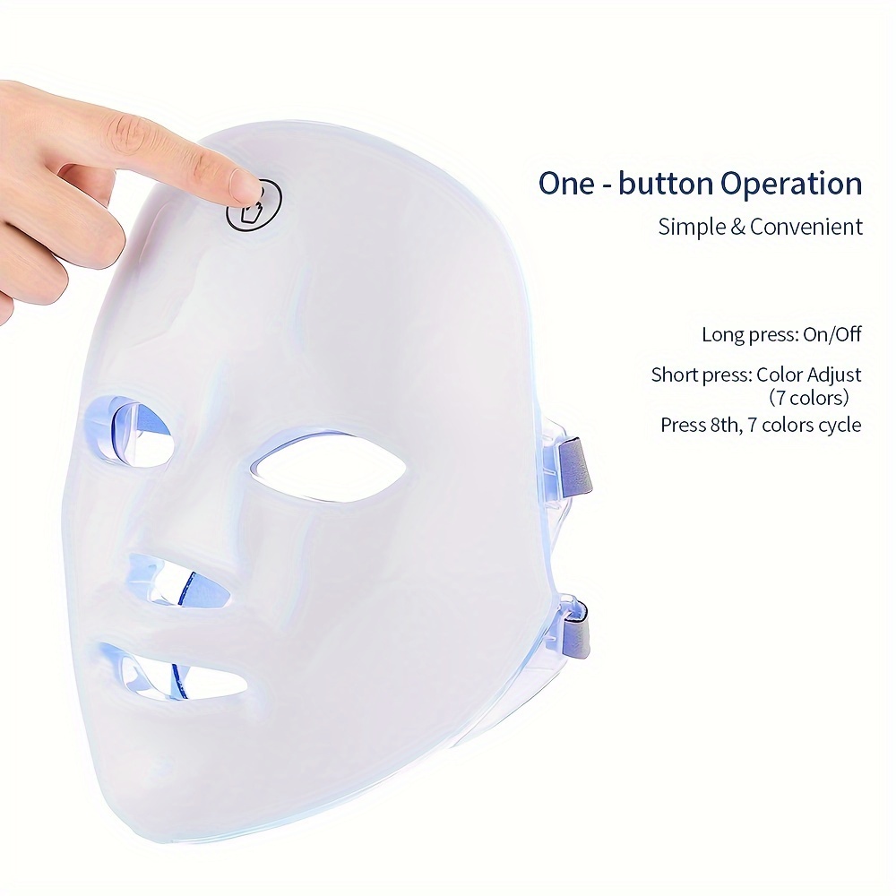 Enhance your skincare routine with this 7-color LED beauty mask. Designed with advanced light therapy technology, it helps improve skin texture, reduce fine lines, fight acne, and promote a youthful glow. Each LED color targets specific skin concerns, making it the perfect at-home spa treatment.