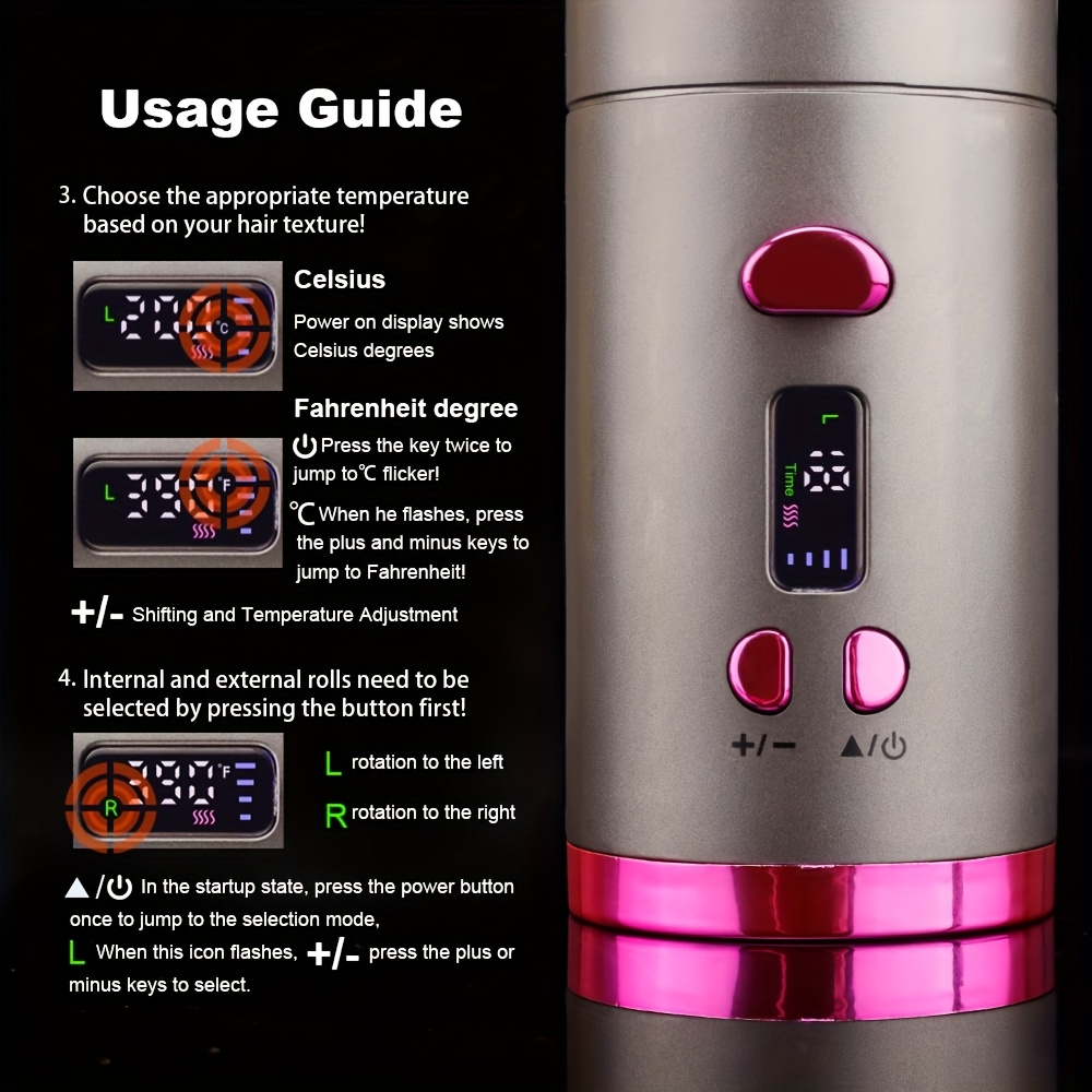Style your hair anytime, anywhere with the USB Rechargeable Automatic Hair Curler for Women. Designed with a sleek pink ergonomic body and a 19mm barrel, this curler delivers effortless, salon-quality curls at the touch of a button. Choose from multiple temperature settings to suit your hair type and desired style — from soft waves to tight curls.